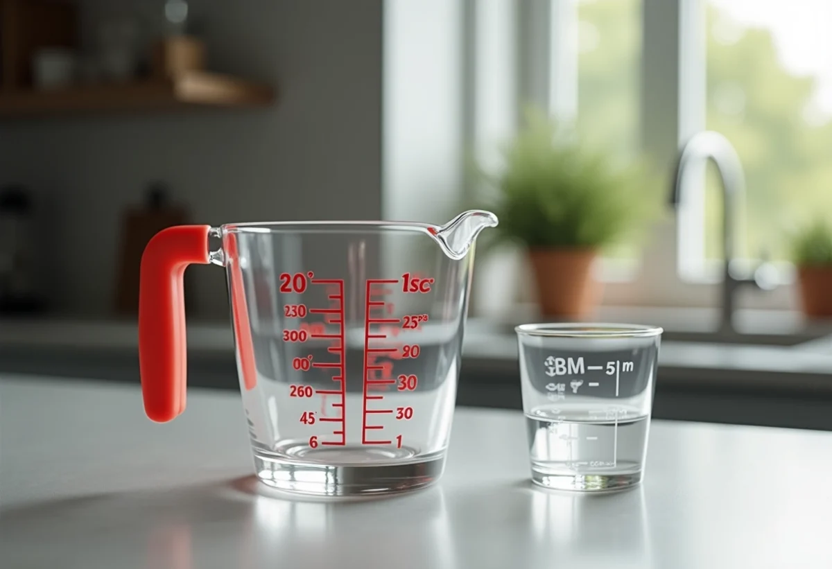 Verre gradué : l’outil le plus couramment utilisé pour mesurer des liquides. Ce récipient transparent possède des graduations précises, permettant de mesurer des volumes spécifiques. Un verre gradué inclut généralement des unités en millilitres et en centilitres, rendant la conversion simple et rapide. Que vous mesuriez de l’eau, du lait ou tout autre liquide, cet ustensile est indispensable.