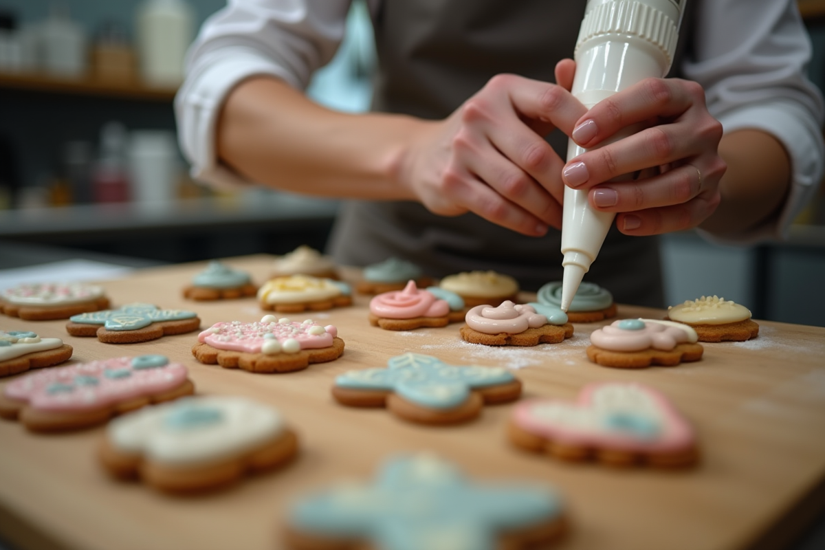 Chloé, passionnée de biscuits raffinés, recommande de laisser durcir légèrement les contours avant de remplir l’intérieur. Cette méthode offre une séparation nette entre les différentes zones et permet de maîtriser parfaitement la répartition du glaçage. Pour remplir l’espace central, une douille plus large ou un cornet à pâtisserie fera l’affaire.